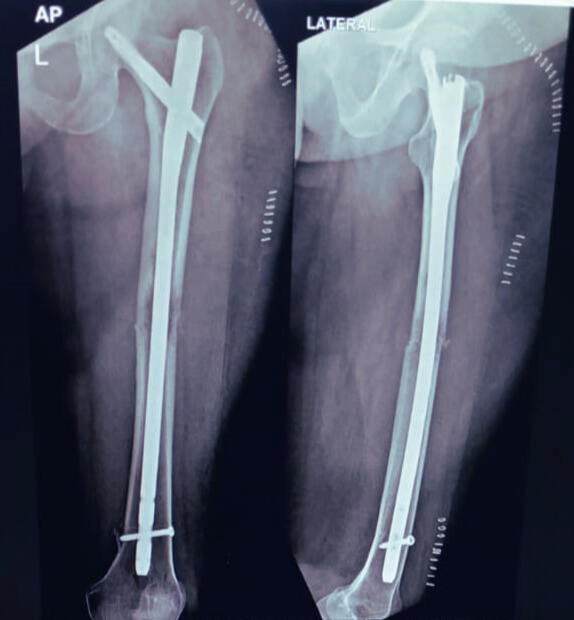 Her recovery progressed smoothly with steady pain reduction and improved limb stability. Follow-up X-rays confirmed proper alignment and promising early healing. The Samay Surgical PFNA nail played a vital role, offering excellent stability, precise fit, and reliable locking, which supported faster mobilization and confident weight-bearing. She regained a stable gait and functional movement within the expected recovery period, reflecting a successful overall outcome.